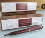 ¡Qué bonitos son estos bolígrafos para entregarlos como recuerdos en cualquier evento! Con un elegante diseño en color rojo a rayas con detalles de clip y punta en color plata.